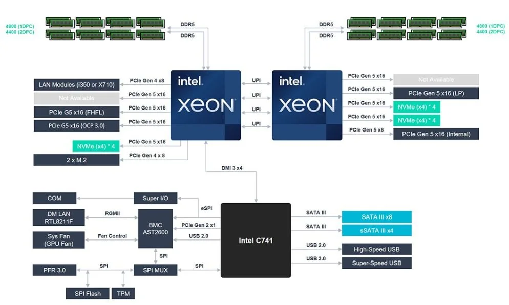 Total slots: 32 (8-channel per CPU, 16 DIMM per CPU)
